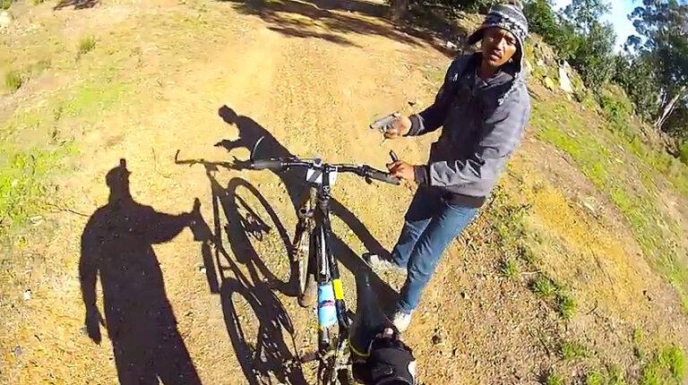 Yes you read that right, this unlucky chap was relieved of his bike mid-ride thanks to a gun toting thief! Not much you can do...