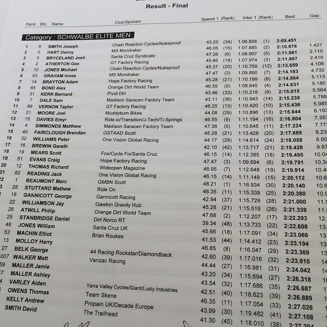 Top provisional results are in from British Downhill Series Llangollen 2015.