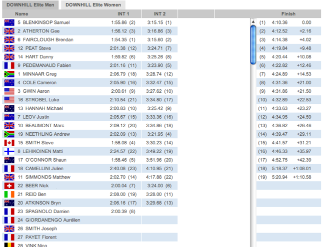 We’re trying to update the results every few minutes as they come in. We’ve just heard from Champery that Aaron Gwin doesn’t realise that he...