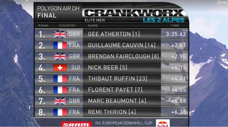 Gee Atherton and Myriam Nicole take the win at Polygon Air DH iXS European Cup at Crankworx, full results inside..