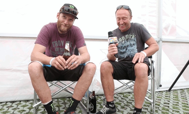 Gstaad Scott World Cup racer Brendan Fairclough riding Peaslake and chatting up the locals