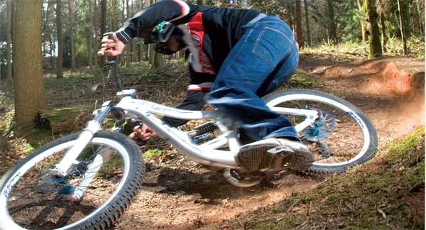 Many people might have been fooled by Specialized’s new Big Hit with its whiter than white make–up and graphic overload. But is this your thick sliced white? Well, the Specialized definitely has a dark side, its black crows taken out of a Hitchcock film, and componentry not befitting a bicycle of this price tag. Alarm bells ringing and believing there have been attempts to fool, it will surely put a huge number of people off and go in search of something with more subtle packaging. Taking a chance we ordered one up, unwrapped it and attempted to squash it into a ball of worthless mucky dough.