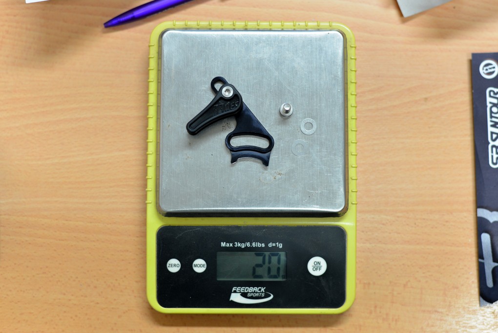 Yes those scales are reading correctly, this thing weighs in at just 20g, and that’s including all the mounting hardware. You might not even need the spacing washers! With a clutch rear mech and a narrow/wide chainring you might think that you don’t need a chainguide, and 99% of the time you probably don’t, but even with the best setups your chain can still come off occasionally. If you happen to be racing that could be disastrous, and even at the best of times it is still annoying, so we would always recommend running some form of top guide as a belt and braces approach. Riders who aren’t running one normally seem to be doing it for cost and weight reasons, but this thing really does weigh next to nothing, a small lump of mud would weigh more, and we think it is incredibly well priced, especially considering how nicely it is made and finished.