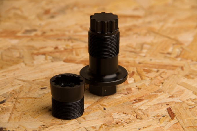 As the Hope cranks have their very own and new system there are a couple of specialist tools you will need to fit and remove them. The far right tool is a standard bottom bracket tool, the cranks run a 30mm axle so one of Hope’s own BB’s is also needed to get things spinning. The ‘wishbone’ tool is used when the cranks are removed from the axle and this sits between the BB and the collar that is unwound with the middle tool to remove the non-driveside are. The black tool with a 19mm bolt head is for fitting and removing the tapered nut that expands the splines of the axle.