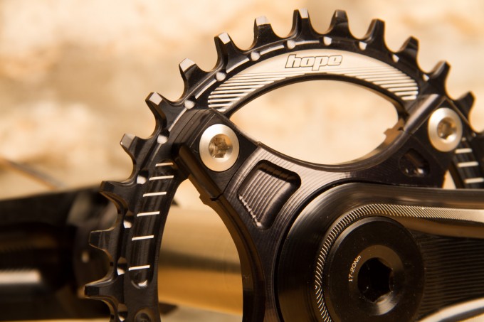 The cranks have been tested on a load of different bikes with Adam Brayton trying his best hucks to flat in the pursuit of perfection. Hope have also setup a new mechanical test facility in which the cranks have been put through their paces with thousands of cycles of pedalling stress and bending to make sure they will last. Hope have gone to town, reinforcing the philosophy of “once it’s out the door, we don’t want it back”.