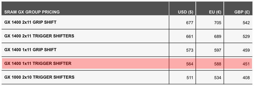 Well in the main it means that buying a good quality groupset with proven technology is now readily available for a reasonable price, a quid over £450 for a full setup is pretty reasonable when you can spend the same on just a set of cranks. All in all this seems like a good deal from SRAM, are there negatives? Well we are yet to try out the drivetrain so yes there could well be issues but the history is good and the technology seems to have worked well thus far so the signs are good. Here’s the pricing info: