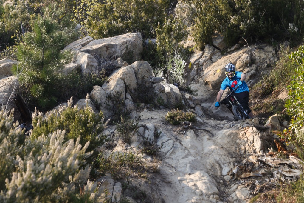 As mentioned, the bike wanted to bounce around up front, which then transferred rearwards creating a ragged ride. Rattling from the rear, stiff in the middle the Devinci disappointed, which led riders to focus on the negatives given the luxury that was being offered up by the other contenders. It was not in any way the fault of the suspension design, for behind the noise it felt comfortable in the square edged rocks of San Remo. With the longest of shocks on test it was difficult to fully focus on the Cane Creek Double Barrel performance given the weaknesses elsewhere on the bike, but the middle settings appeared pretty balanced. Access, like the Demo, is difficult.