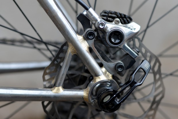 A Curtis frame may be almost utilitarian in some ways, but there are some nice little details to be found, such as this seat stay brace. Personally though I think Brian’s incredible brazing is the most beautiful thing about any Curtis, it’s a work of art. If you want to be able to admire his handiwork in its full glory then you can have your frame finished with a clear powder-coat finish (this particular one is actually completely raw because there was no time to paint it before a show).