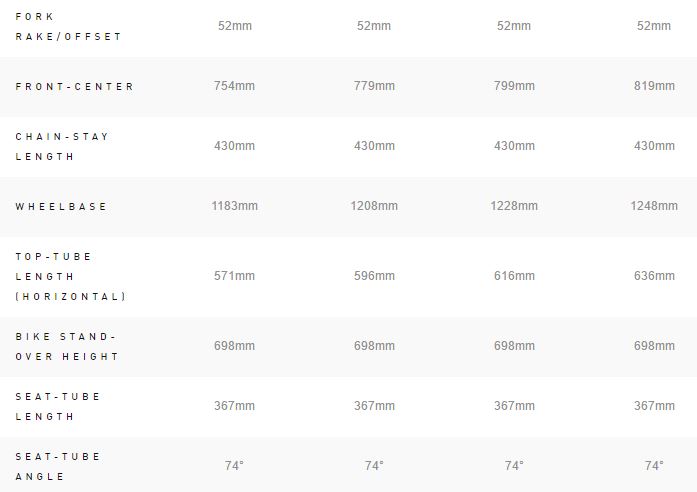 The iconic bike is now offered in both XL and XXL sizes, making it one of the first calling points for the taller riders out there. The XL has a wheelbase of 1249.2mm and reach of 450.8mm, and the XXL a wheelbase of 1278mm and reach of 475mm. The top tube is 655mm on the former and 682mm on the latter.