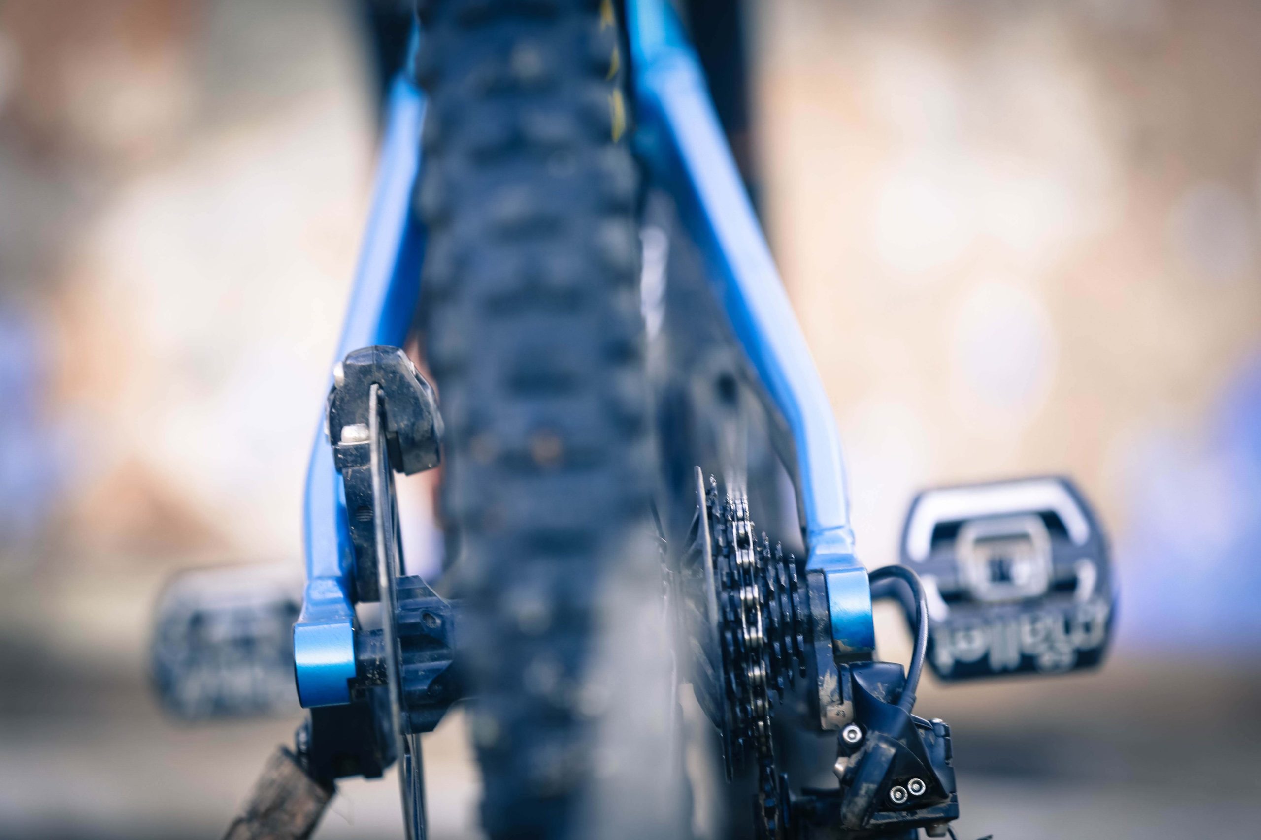 High anti-squat enables efficient acceleration but also results in more pedal kickback. We optimised this to strike a balance that actively increases the riders momentum without causing undue leg fatigue over fast repetitive hits.