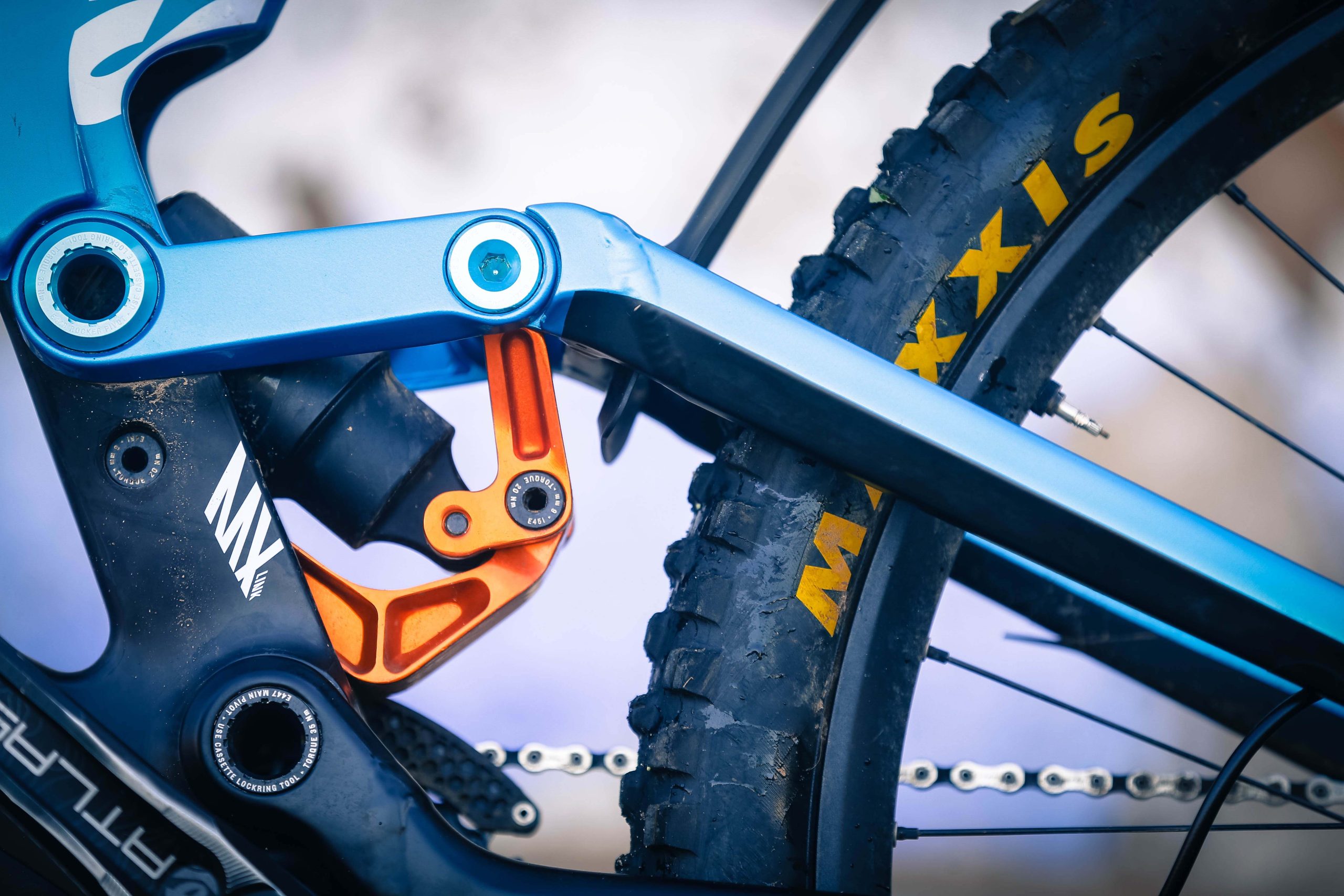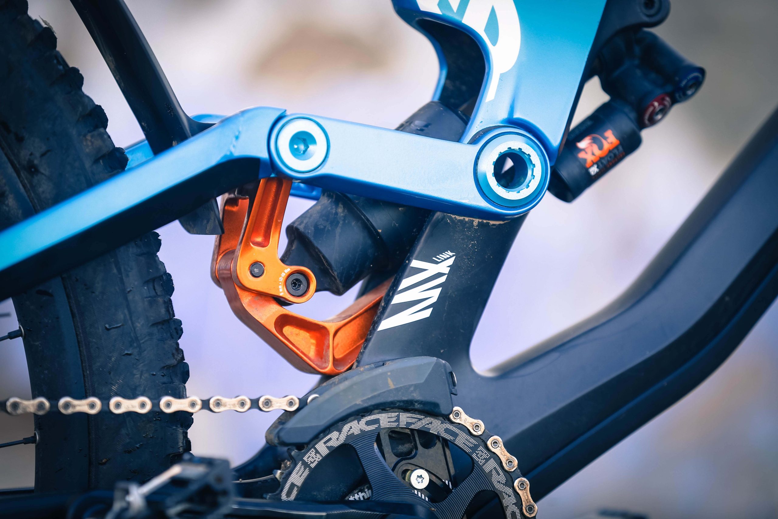 At the heart of the bike is Canyon’s MX link inspired by…you guessed…motocross. Canyon say this link enabled them to tune the shock leverage ratio independent of anti-squat, pedal kickback or anti-rise. Still, they see the bike comprising three distinct phases – TPS (triple phase suspension).