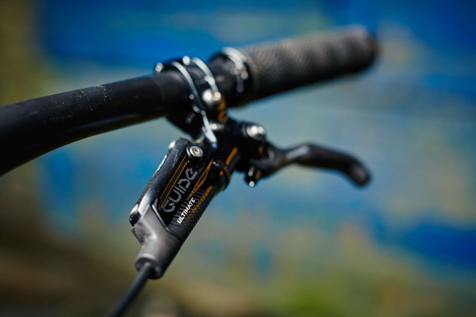 But the Glory is very much one of the favourite choices of the privateer racer. And this is because of that business-like, reliable specification. It’s almost full Sram componentry here and yet again, like nearly all our first choice bikes in the Dirt 100 feature the seven-speed Sram gearing and chainset. And even moving away from power delivery to holding the horses Giant have cleverly gone for the finest Sram Guide Ultimate brakeset, and it really is the best brake currently on the market providing not just reliable performance but consistent braking as you progress downwards.