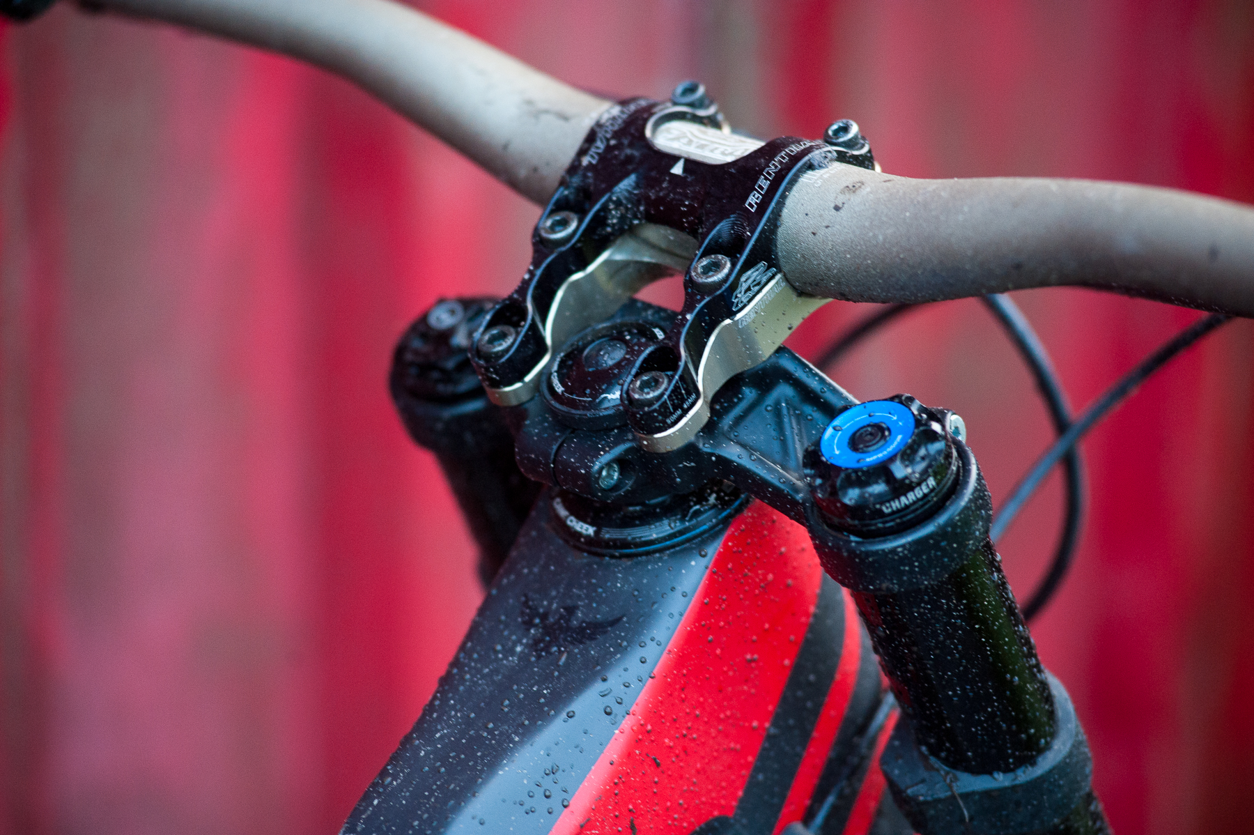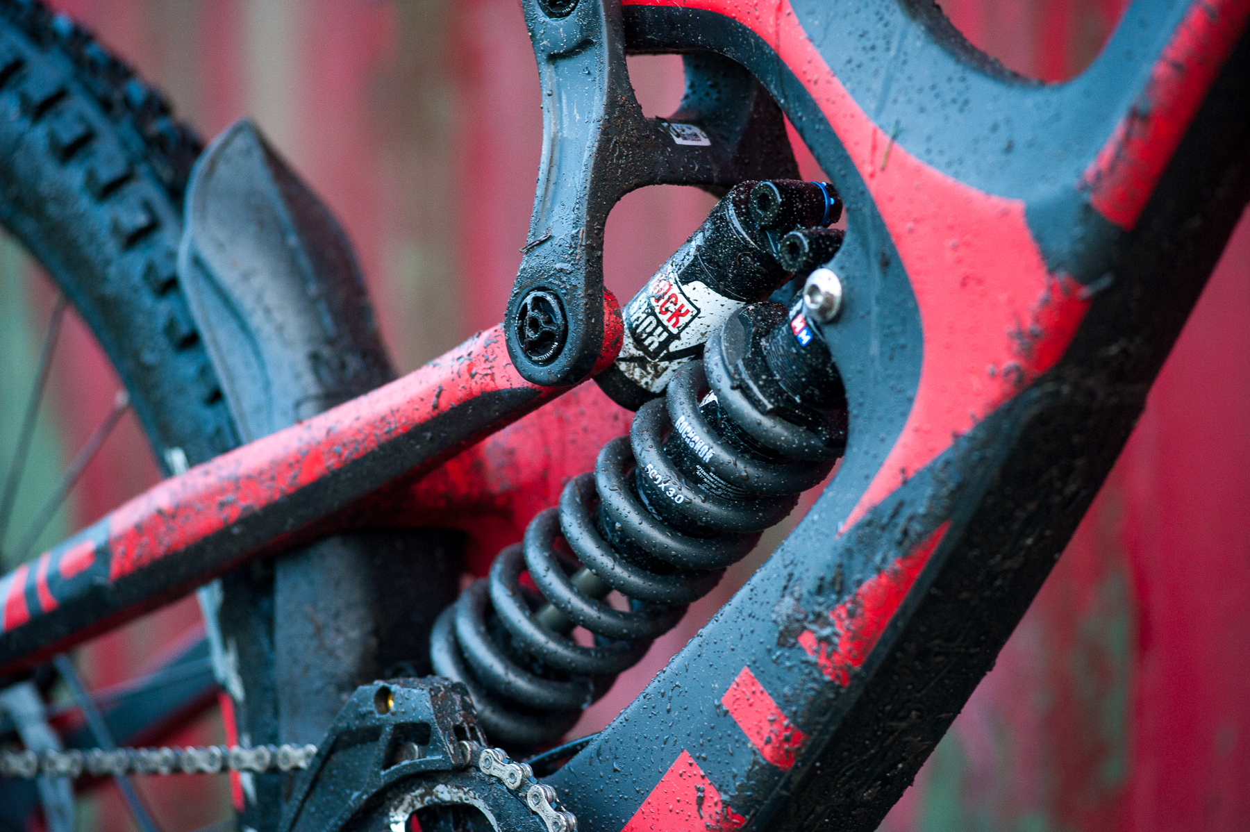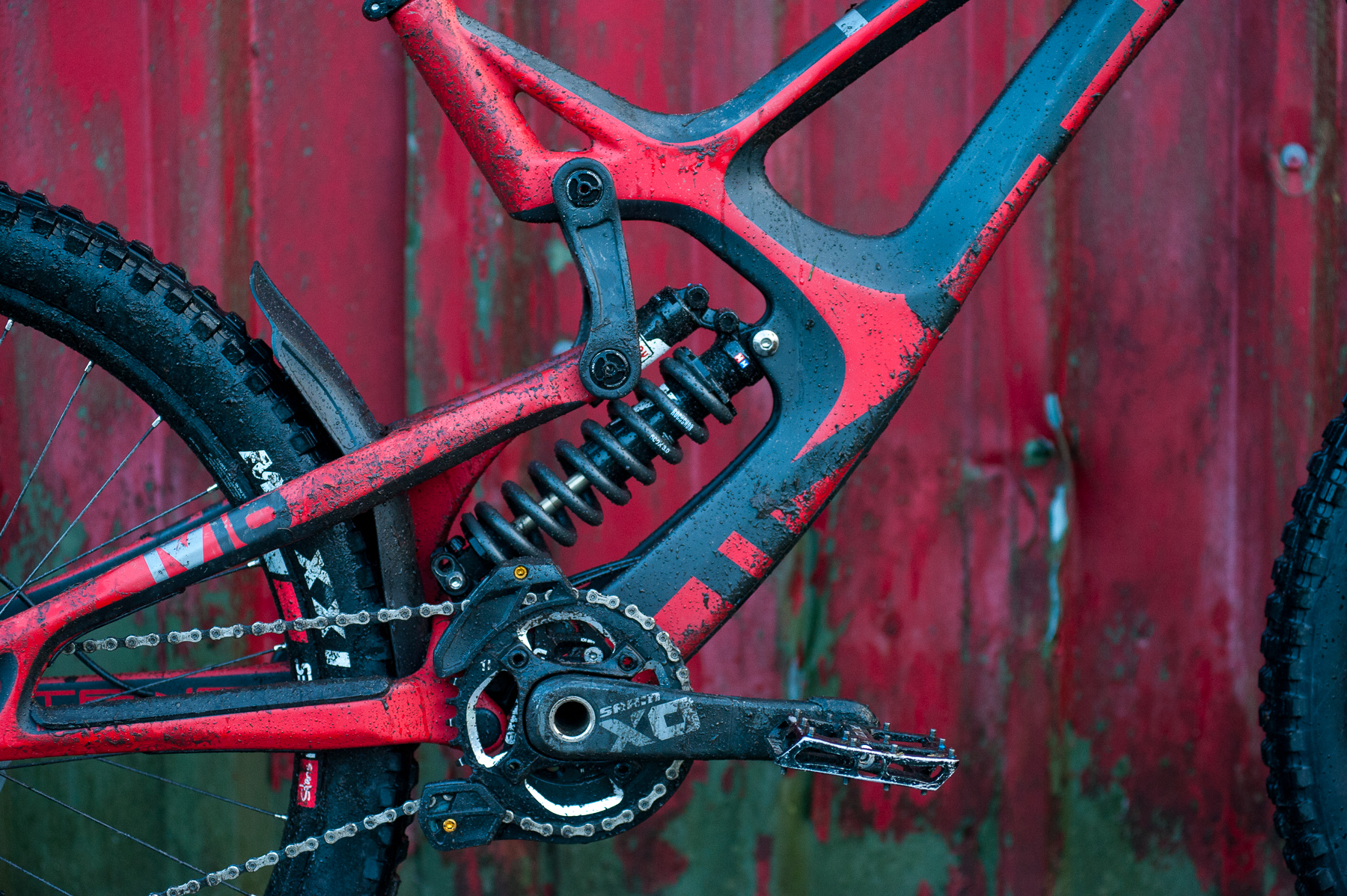 Apart from the steering issues the bike is also too small. This adds to the problem. A large is nowhere near big enough for a six foot rider and we had 5’ 10” riders complaining of the knee tight cockpit. The geometry numbers indeed reveal that it is one of the smallest size large bikes on the market. The bike also feels slightly wooden as a package in terms of chassis flex/stiffness compared to bikes such as the Giant Glory or Specialized Demo. The numbers are not middle of the road as many suggest but weighted more towards the smaller end of the scale, certainly in size large – an average size bike nowadays.
