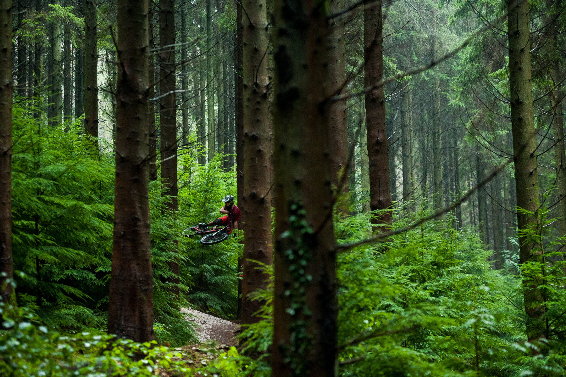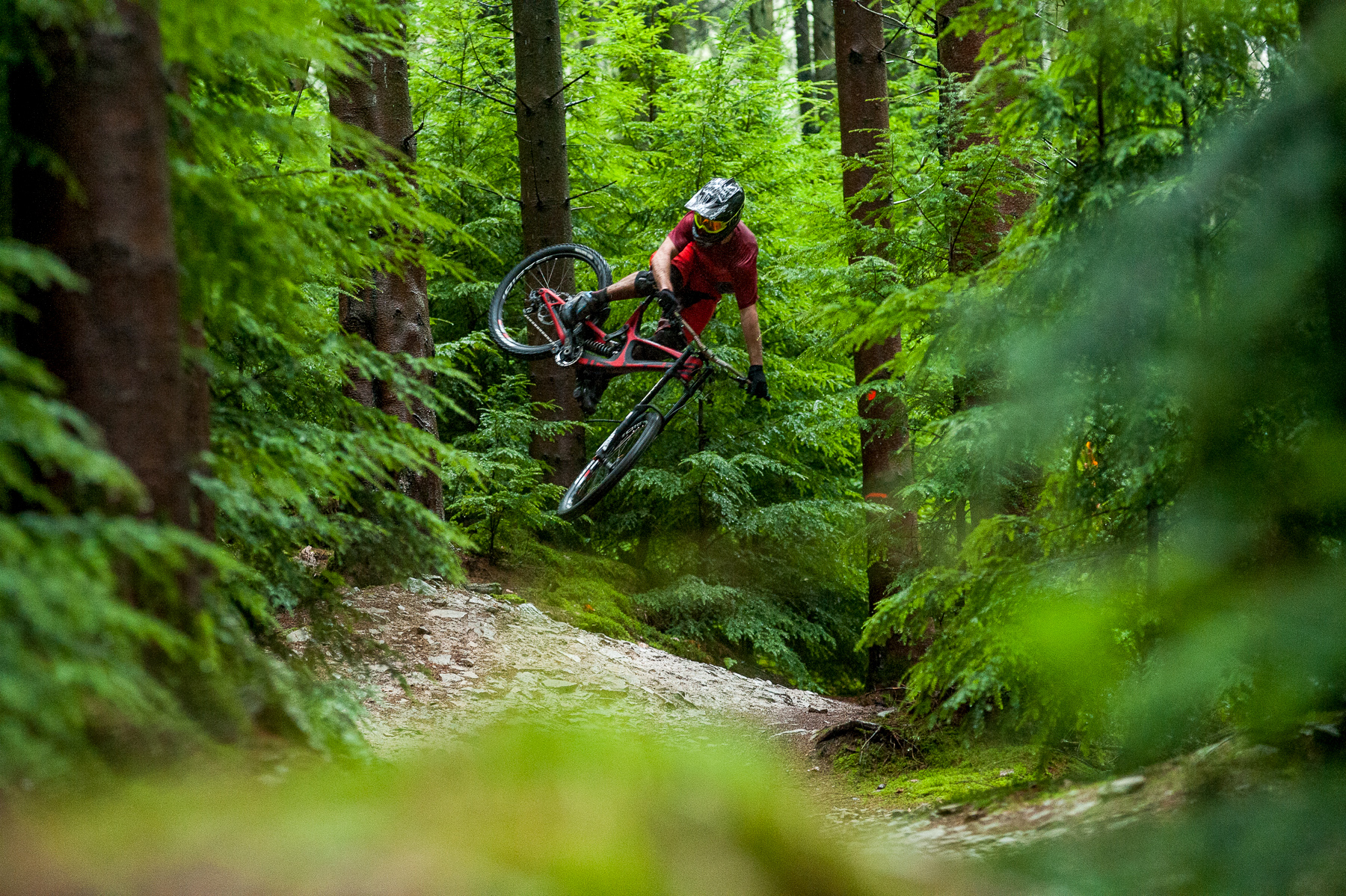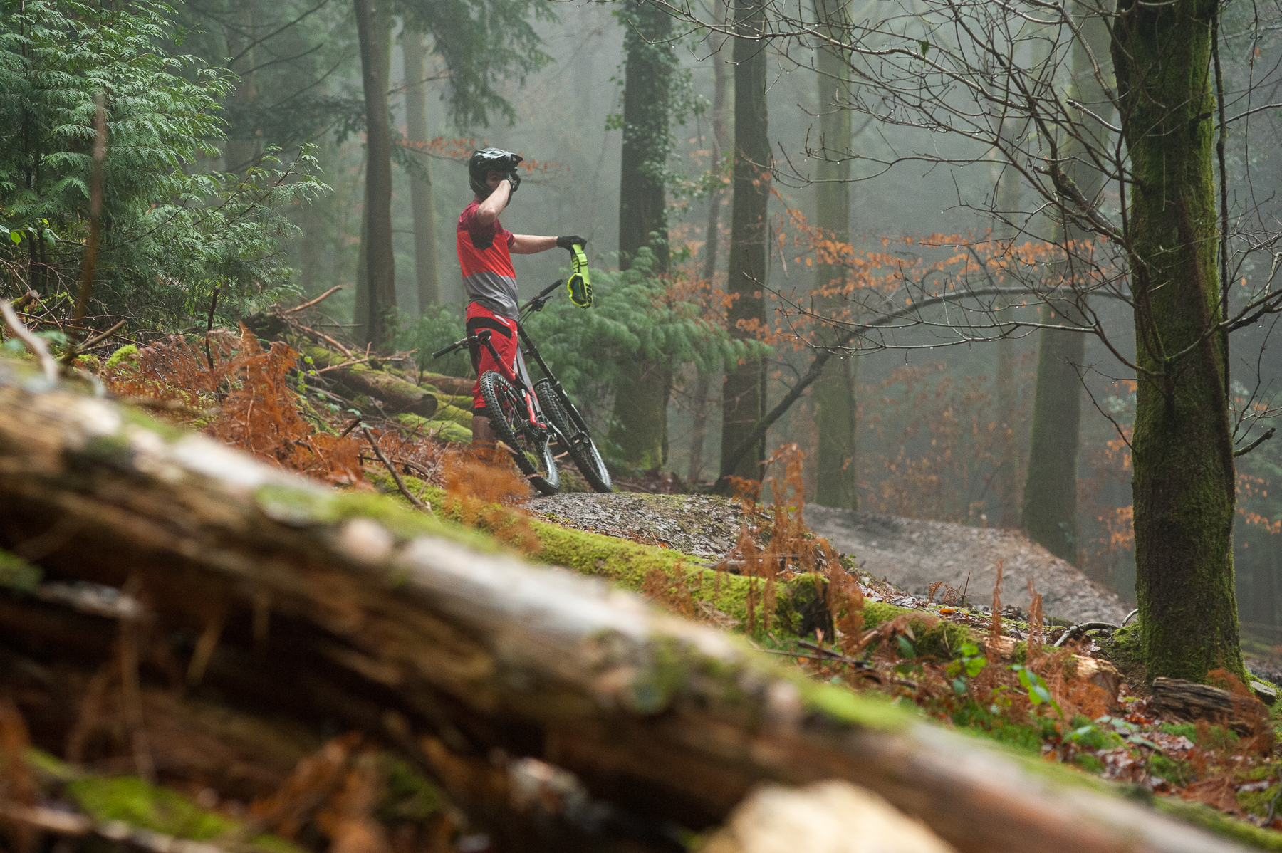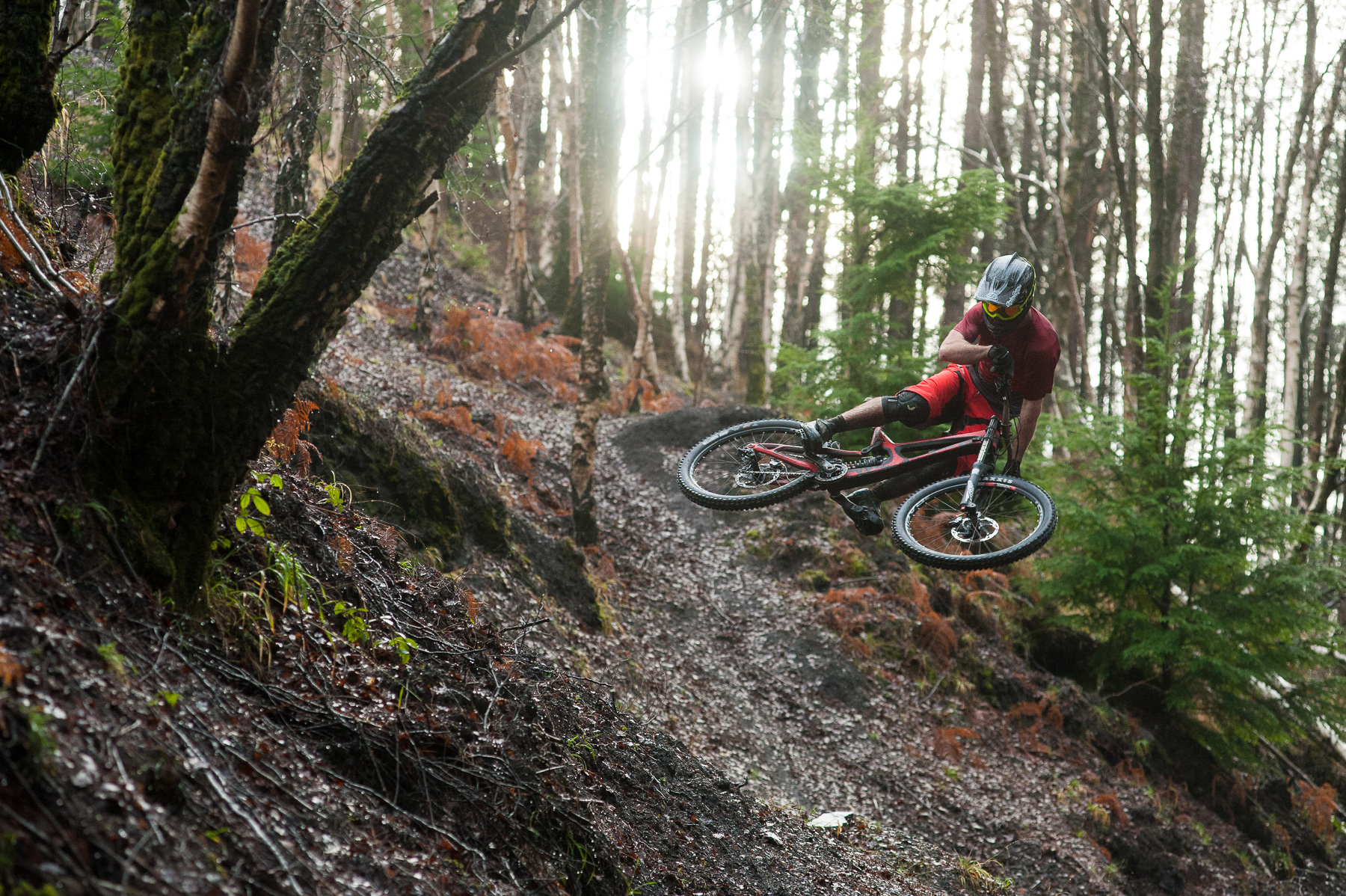 Counterweighting front and rear tyres on the M16C during a run requires practice, and it doesn’t take long, but it’s only when you compare to lower, longer size large bikes that it hits home that the geometry is slightly out on this bike. There’s so many more well balanced bikes on the market. On the days of testing we had a Giant Glory to use as comparison. The inch lower bottom bracket on the Glory (and taking into account less travel) highlighted the better rider position when the bike is at full extension (out of sag) entering corners and extending back from compressions. Cornering and steering on this bike lack the precision expected. The short front end doesn’t help matters.