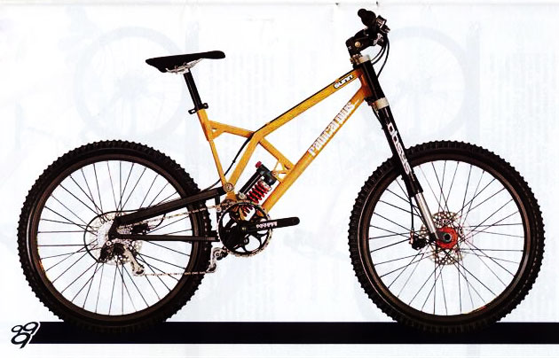 Giove, Vasquez and Rockwell all rode these totally radical and innovative beasts in the late 90s. Three chains and four cogs make up the drivetrain, the fork was two leftys bolted together and each one is estimated to have cost over $20,000 to build.