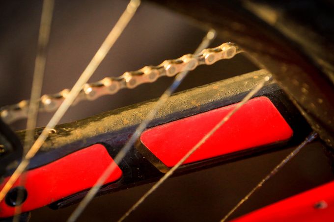 Full internal cable routing – but not the kind that rattles inside, 135mm rear axle, lipped and sealed cartridge bearing pivots, asymmetrical design for ease of access, but let’s not kid ourselves, we ain’t touched this thing in heading on two years.