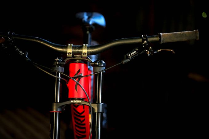 The unique Guide/Code brake combination. The seven speed Sram X0DH gearing, a system which Specialized pioneered. The slick Slaughter rear rubber, the chunky Sip grips, the custom Specialized bar, the custom Dt Swiss, Star ratchet, 54T quick engagement, XX1 driver body, 12mm thru-axle, 32H rear wheel. This is a special bike.