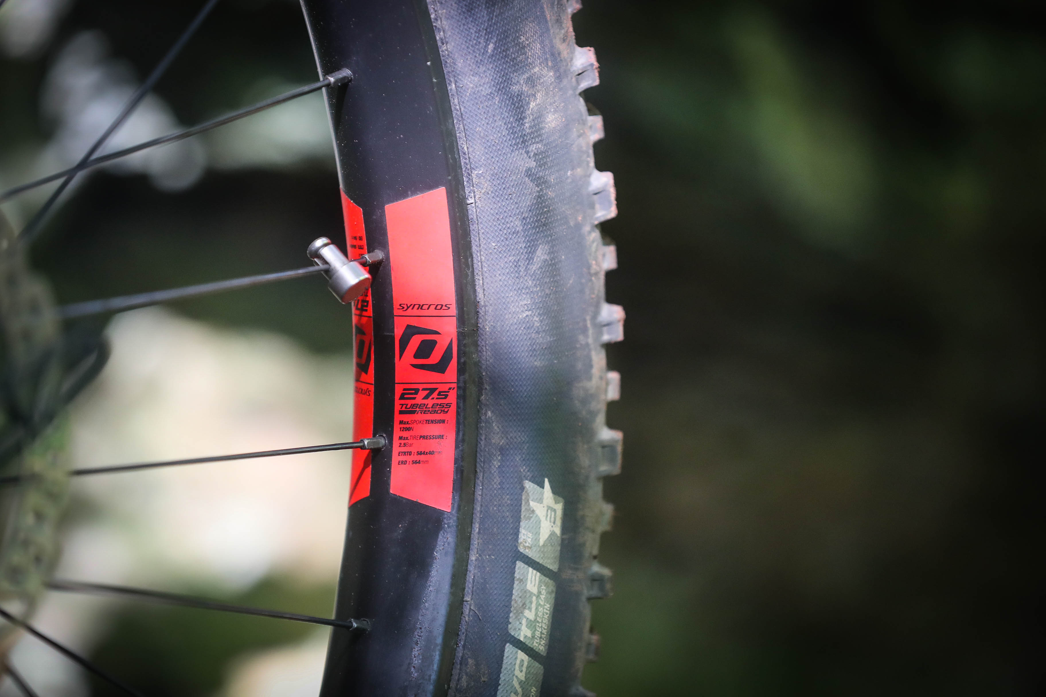 We’ve run the 2.8 and 3.0 Schwalbe Nobby Nic tyres plus the 3.0 Specialized Purgatory and as long as you’re not hammering into rock and root with too much force they are a good big ride option.
