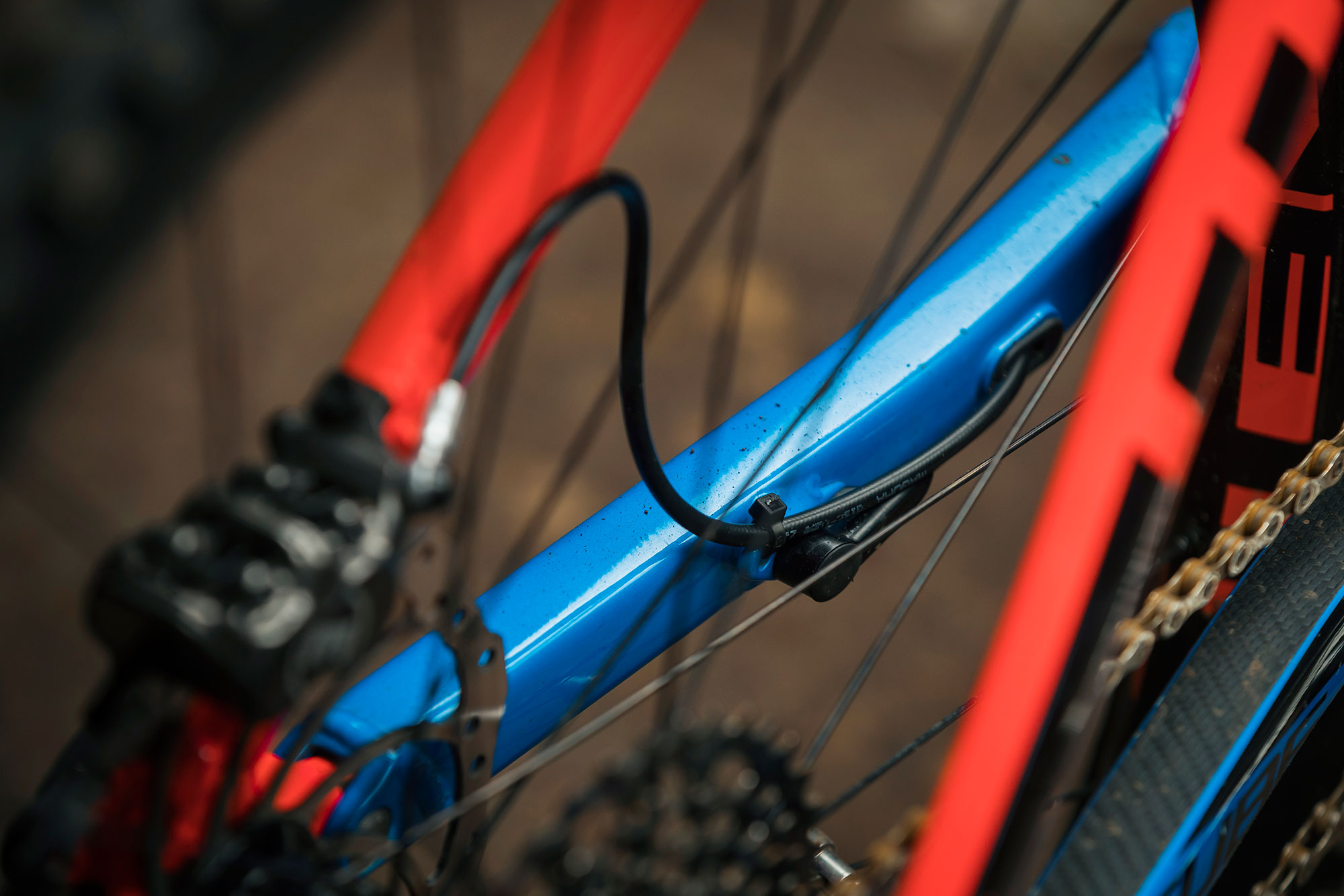 Cube boldly say that this bike is at the forefront of “performance enduro riding” and they’ve certainly sweated the details when it comes to the frame layout and geometry. The Stereo Hybrid has a chainstay length a touch shorter than many e-bikes but most notable is the bottom bracket height, which is in a great position to aid the cornering character. They’ve kicked the head angle back to a shade over 66 degrees; up to date and ready for action. But what about the suspension hardware?