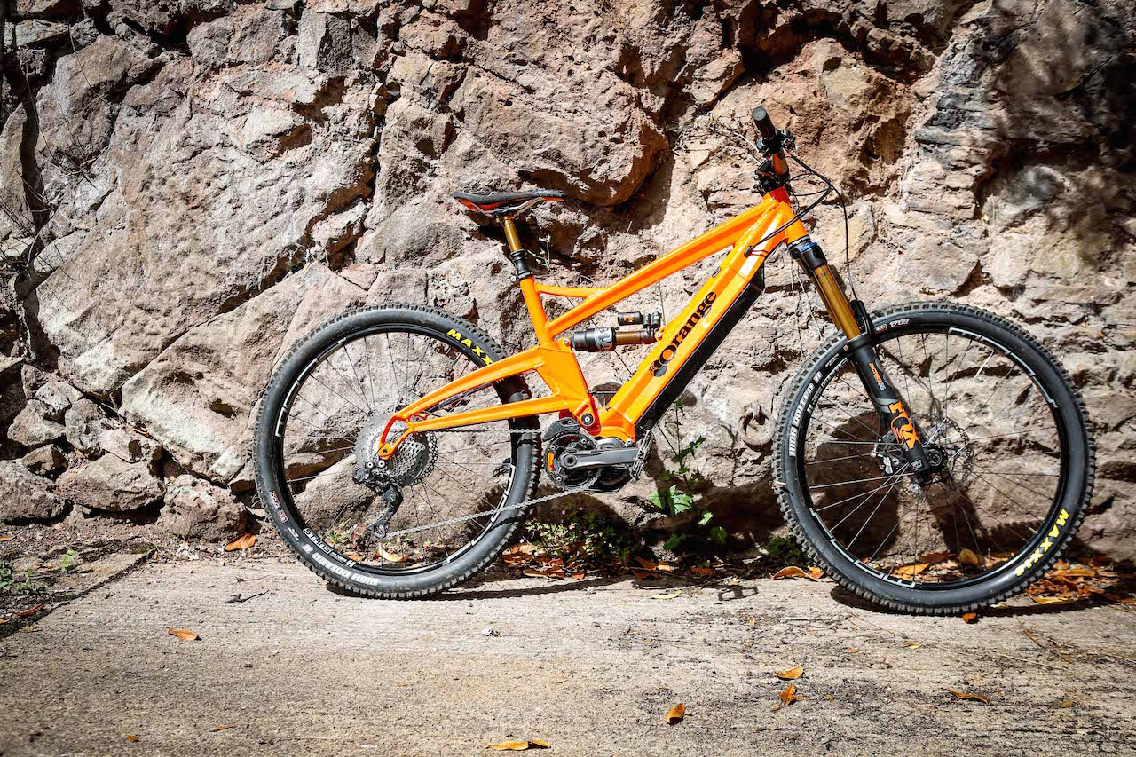 When it comes to wheel sizing, we have a preference for ‘Plus’ size 2.8/3.0 tyres (with a tough casing ideally) on 35-40mm 27.5″ rims, as seen on both the Trek Powerfly LT and the Specialized Turbo Levo bikes. Orange however, have stuck with standard 27.5″ wheels, and with Boost hub spacing can run the new generation 2.5/2.6″ rubber. It looks like we’ll be seeing more of this tyre size from many brands over the next year.