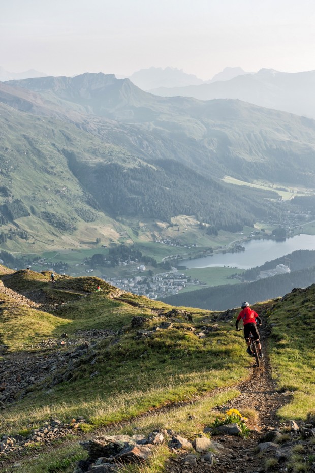 The trails were a great mix of steep and loose singles, we also savoured some of Davos’ newly built dual purpose MTB/hiking trails, a similar feel to some UK trail centres but more rugged – clinging to the sides of some 3000m peaks.