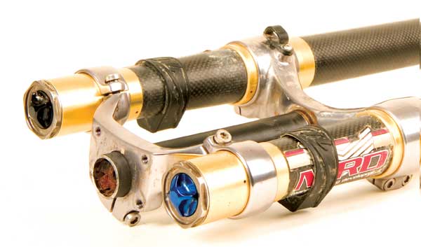 Because the damping system is an open bath design it can, like any other open bath fork, suffer from air getting into the system if the bike is left lying down or placed upside down. It’s easy to sort out though as to bleed the system all you have to do is whack the rebound adjuster fully on and then keep compressing the forks until they rebound slowly all the way through the travel.