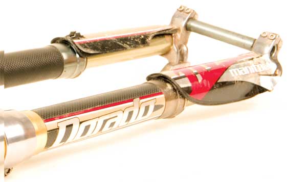 There may have been a half decade time gap between version two and this latest incarnation of the Dorado, but there’s no doubting for one second that this fork is still very much a true Dorado. Visually, with its upside down design and huge carbon upper legs, it looks remarkably similar to the forks of old, but as you’d expect with any next generation product there have been numerous changes, which in the case of these forks are almost entirely internal.