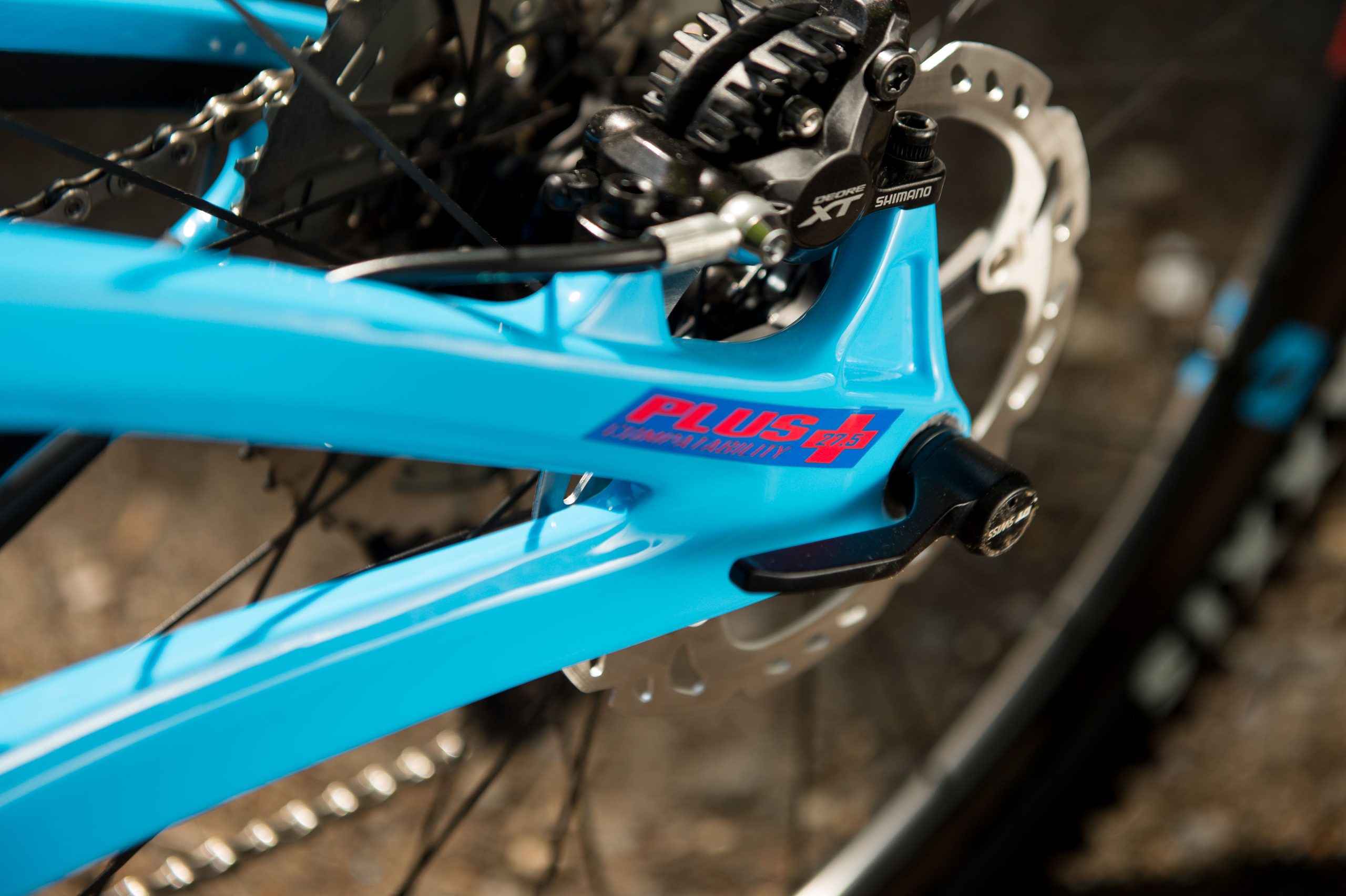 In plus configuration you lose a bit of the speed but gain pop and playfulness that seems at odds with the 2.8 inch tyres slammed into the frame.