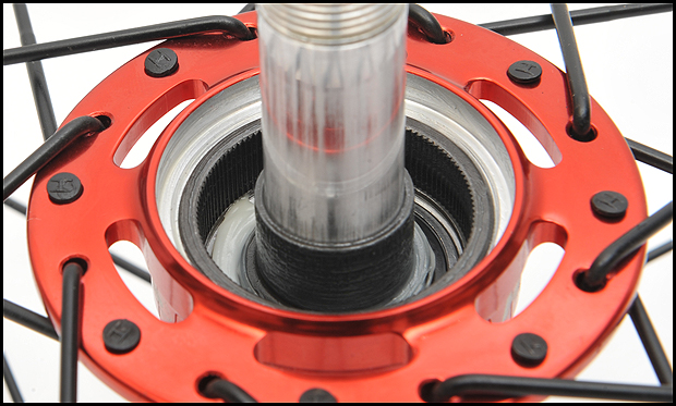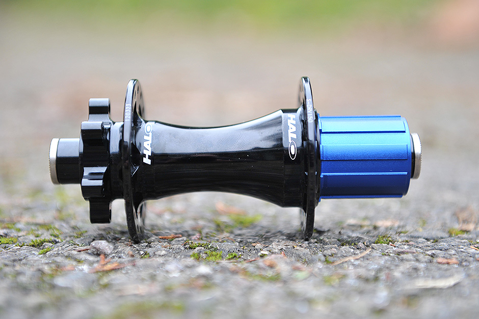 The rims are laced up with 32 double butted spokes to Halo’s own hubs, which once again have already proved to be quality bits of kit. You get cartridge bearings throughout and the ability to run them with the most common axle standards. The front hub is a little annoying in that the 20mm axle adaptors aren’t captive so if you take your wheel out you have to be careful not to lose them, and it’s a bit more of a faff to put your wheel back in, but apart from that it does a sterling job. It’s at the rear though that you get something pretty special in the shape of Halo’s SupaDrive freehub system. This has pawls which use loads of fine teeth to produce 120 points of engagement. That means almost instantaneous pick-up. The photos below show you what the design looks like…