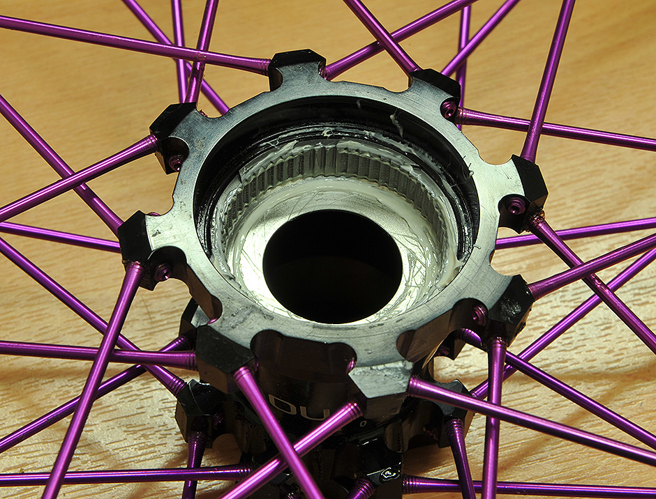 This shot of the ratchet gives a great illustration of the kind of attention to detail that you get with Industry Nine hubs. You should be able to see some little cut-away sections on the top part of the ratchet, and these are there to simply help the pawls slot in nicely when you reassemble the hub. This is often the most awkward part of putting a freehub body back together, but this system makes it a doddle. I haven’t seen this feature on any other hub, and to me it’s proof that the guys at Industry Nine know their onions and realise that it’s often the tiny details that can make a difference.