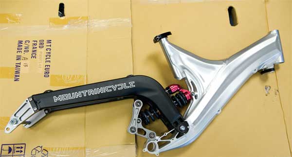 For 2009 Mountain Cycle’s Shockwave 9.5 becomes simply the Shockwave, and that’s because they’ve reduced the frames travel from 9.5” to 8”. The changes haven’t just stopped at the revised linkage though, they’ve also managed to shave some weight off, and even more importantly they’ve lowered the bottom bracket and slackened off the head angle to bring the frame more into line with today’s standards. Unfortunately at the time of going to print we still can’t get an exact answer out of them as to exactly what the new geometry is, and they still have the old spec’s on their website, but looking at this frame it still seems like it might be leaning towards the steeper end of the scale. Anyway, it seems incredibly well made and finished for this kind of price, so if a future full test proves it to be even half decent then it could well be the bargain DH bike of the year. Stay tuned…