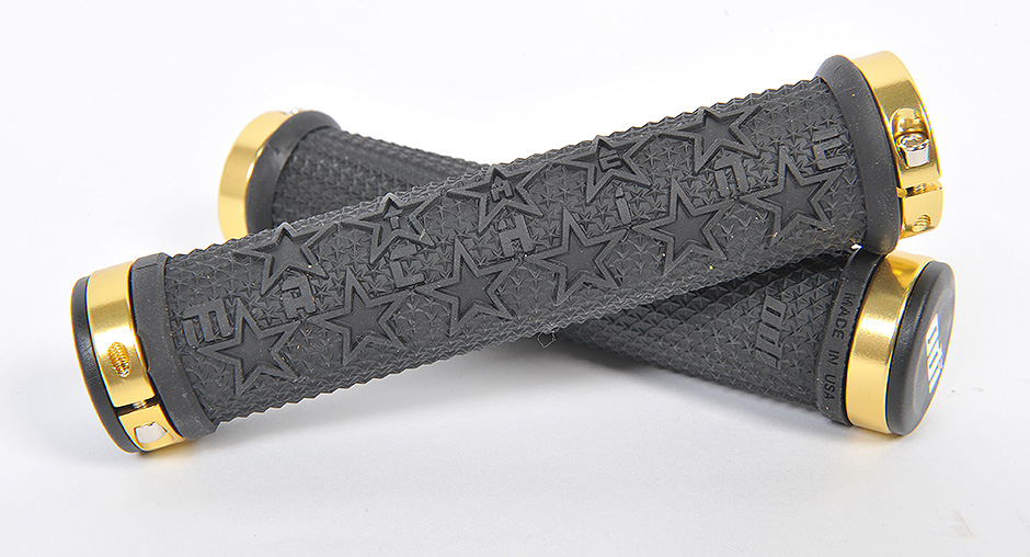 The main part of the grip is made up of a very small star pattern which seems to give a little more bite than the similar sized diamond pattern on the classic Ruffian grips. To aid grip even further, especially when pulling up, the grip also has some much bigger raised stars which are meant to sit under your fingers. I suppose these are really just a different take on the Ruffian MX with a little more grip on the standard part of the grip and then a little less agro waffle part. They’re nice and skinny too. We definitely like them and we reckon a lot of other riders will too, especially because Maris requested that they were made a bit longer than usual. These measure in at 143mm wide which is noticeably wider than most other Lock-On grips which come in around the 130mm mark. Big hands rejoice.