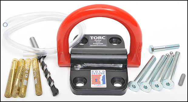 If you keep your bikes in a shed (like a lot of riders do), then you might not have a suitable floor for a Torc Anchor, but don’t worry because Pragmasis have come up with a pretty neat solution for such cases. The Shed Shackle works on the simple idea of bolting a metal framework to the inside of your shed. If a thief wanted to steal your bikes he would then have to remove a huge section of your shed and then carry it with the bikes, which would obviously be impractical for many reasons. The kit comes with some clever shear bolts which have a head that simply snaps off when you’ve done it up tight, leaving it incredibly difficult to remove, especially if you also use some loctite. Different length bolt kits are available to suit sheds of different construction, and there’s also a kit for metal sheds.