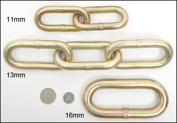 They have a range of chains on offer, all the way from 11mm right the way up to 19mm. All the sizes apart from the 19mm are shown below to give you an idea of the size of them.