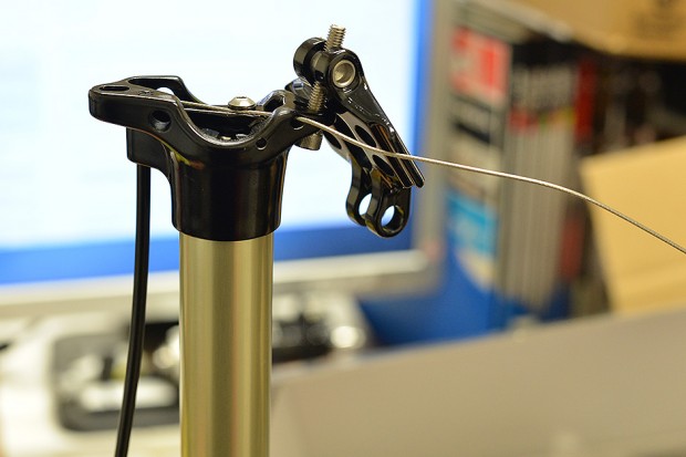 It’s at the post end where the cable clamps, and although it’s easiest if you remove your seat to do it you can leave it on if you really want. It’s pretty neat too, and we particularly like the fact that the end of the outer cable is well housed inside the post, as having the cable pop out is a common and annoying problem on some other posts.