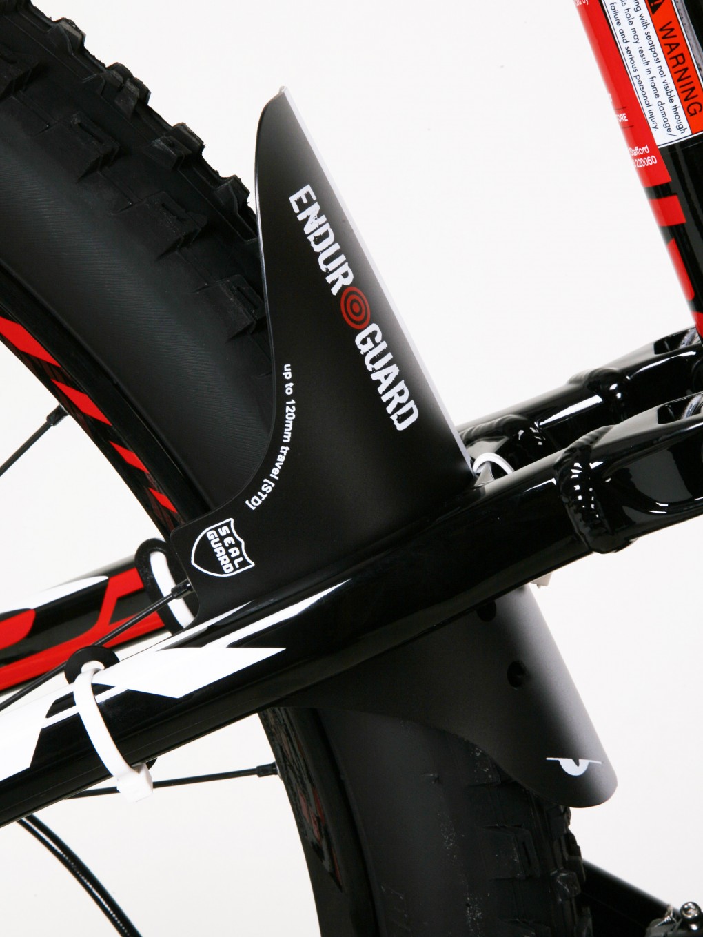 With several different versions now on the market though you’re left with the decision as to which one to go for. They all seem to work well to be fair, but we think RRP might just have managed to sneak ahead of the competition thanks to some neat little touches on this new EnduroGuard (it seems that everything these days has to have the word enduro in it). The main unique feature is that this mudguard has a couple of extra holes that can be easily punched out in order to fit it as a rear mudguard too (in order to protect your shock etc).