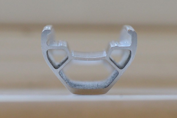 As you can see from this cross section of the rim it’s a decent width (23mm internal), and the design is very similar to that of a Stan’s Flow rim. Those rims have really set the benchmark for the past few years so it’s not too surprising to see that the Hope designers came up with something similar. One notable difference though is that the section where the spokes sit is a fair bit thicker than a Flow, which should provide even greater strength. Hope wheels have always been great value, but we wouldn’t be surprised if these rims make them even more affordable.