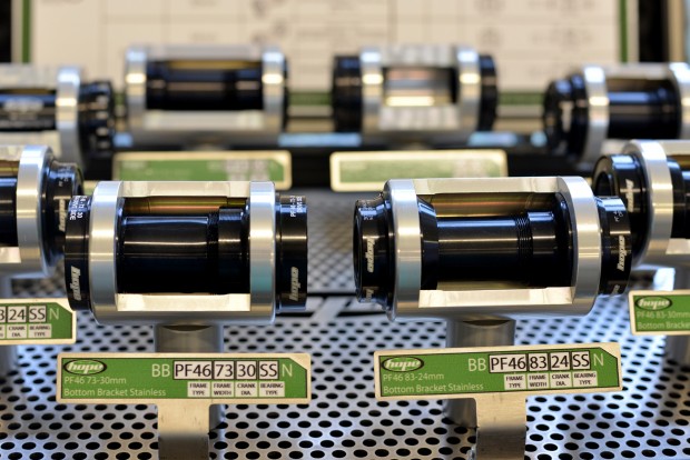 The whole bottom bracket situation has got a bit out of hand if you ask me, but Hope have tried to simplify things by introducing a new fit guide where you just have to take three measurements and then you’ll know exactly which one you need for your frame/cranks. They’ve also completely redesigned their press-fit bottom brackets and they are actually no longer press-fit. Instead they have a central aluminium section that screws together, so now you just tighten them up and they pull themselves into the frame. We are seeing an increasing number of bottom brackets using this type of design and we’re hoping it might finally put an end to the tolerance and creaking issues that seem to surround press-fit bottom brackets.