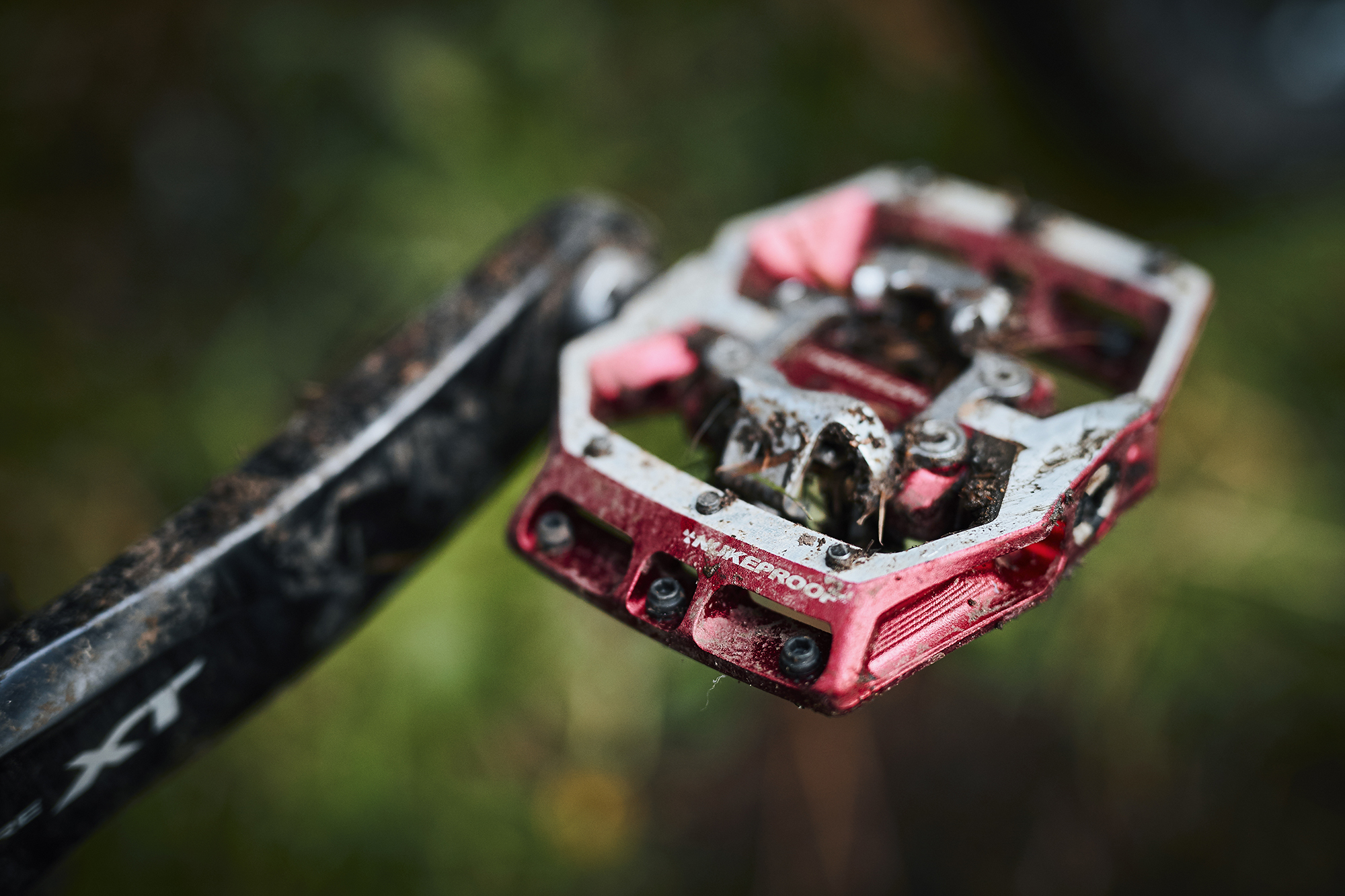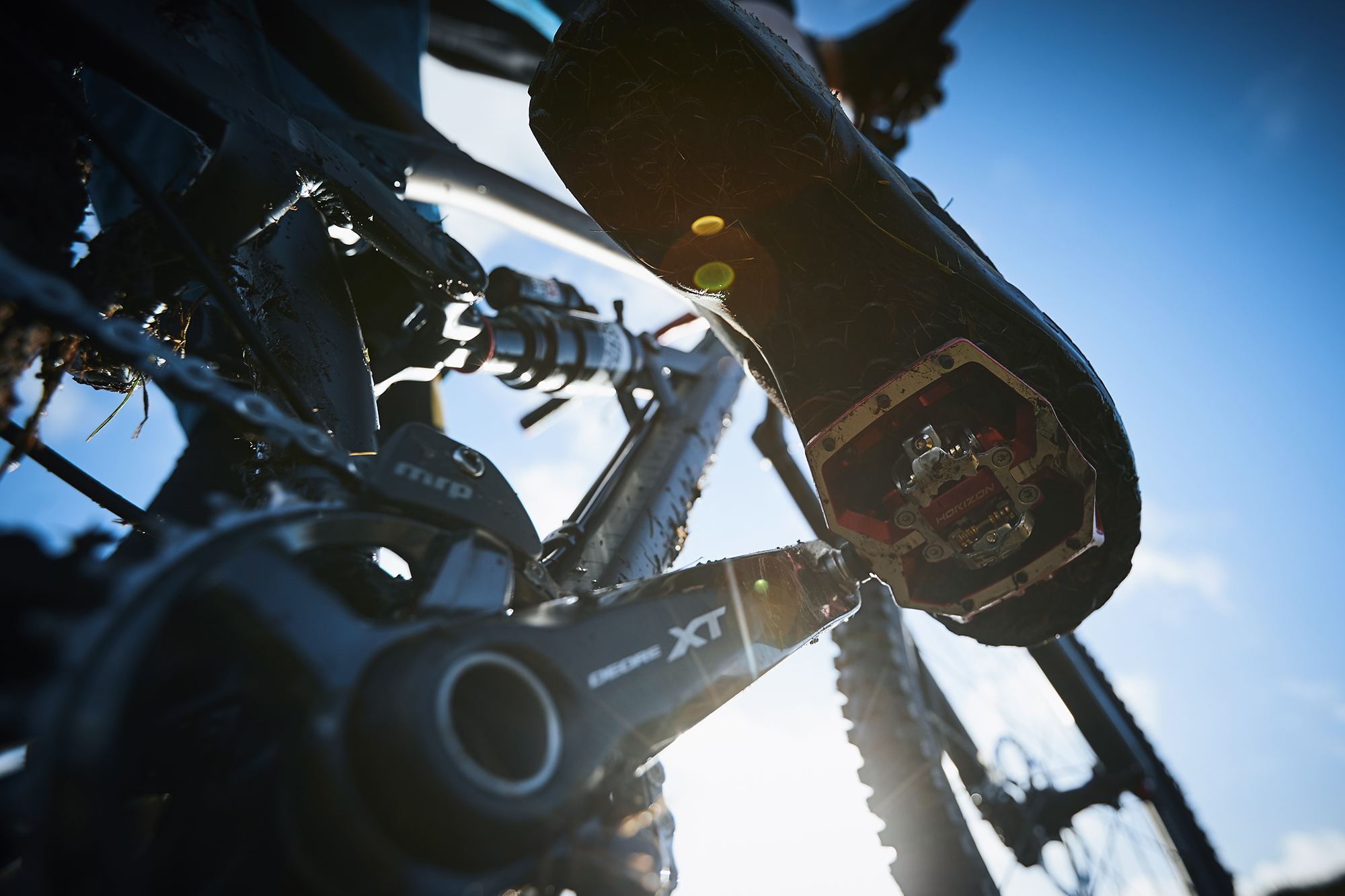 Nukeproof has developed its own cleat but the pedals are still compatible with Shimano’s. The sloped edges allow the rider to engage from forwards, backwards and above.