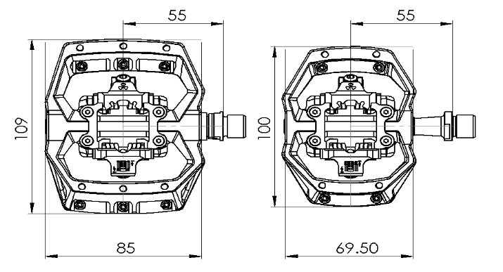 The platform is made from aluminium and has been cold forged to apparently give “high strength vs weight characteristics”. The Q-factor on both models is 55mm that should make it compatible with 142/148/150mm rear axles.