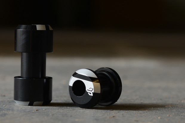 The final product that we’ve received from Production Privee are these offset bushings, and they have to be the pimpest ones that we’ve ever seen. It has to be said that the quality of finish is complete overkill as you’re never going to see the bloody things, but hey it makes you smile when you’re fitting them. Currently they are only sold in 22.2 x 8 mm pairs but that’s one of the most common sizes right now (Santa Cruz, Commencal, Transition etc), and each bush has a 1.5 mm offset, meaning that in total the eye to eye length of your shock will be reduced by 3 mm. Depending on your bike this will result in a head angle change between -0,5° and -1°, and a bottom bracket drop of 5 to 10 mm. Each set of bushes also comes complete with rubber seals to help them last as long as possible. Oh, and in case you are wondering one of the bushes in the photo above is a custom one that’s a different length, and Production Privee are at some point looking to expand the range of sizes that they offer.