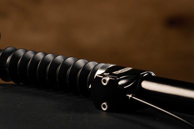 It’s certainly not going to win any beauty awards, and it’s never going to offer the kind of silky performance that you get from a Reverb, but nevertheless our first impressions of this post are very positive indeed. Design wise it’s very similar to a Gravity Dropper in that it’s a simple mechanical design rather than hydraulic, and from past experiences this is only a good thing when it comes to reliability. Of course you don’t get infinite adjustment, but to be honest I think the three positions that this post offers is plenty enough. You get fully up, 60mm down, or 100mm down. Again it’s not the biggest range of adjustment out there, but unless you’re particularly tall you’ll probably find it’s as much as you need.