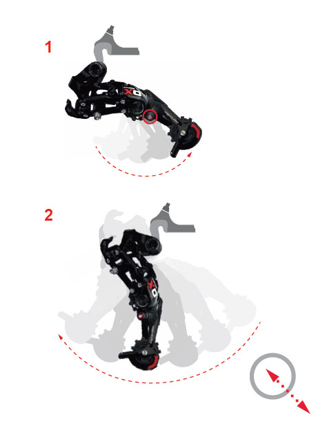 The first rear derailleur of its kind, SRAM TYPE 2 lets you push your cage forward and lock it into place with the push of a button. This creates slack, removing all tension from the chain. With Cage Lock, TYPE 2 makes wheel removal and installation—as well as chain installation—easier than any other derailleur on earth.