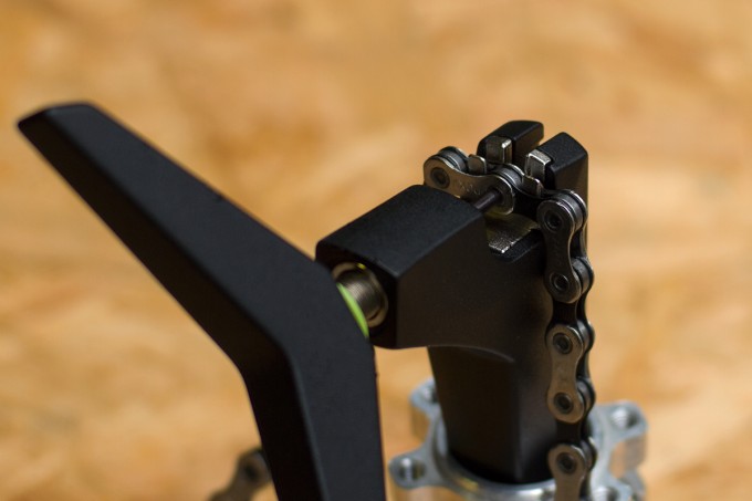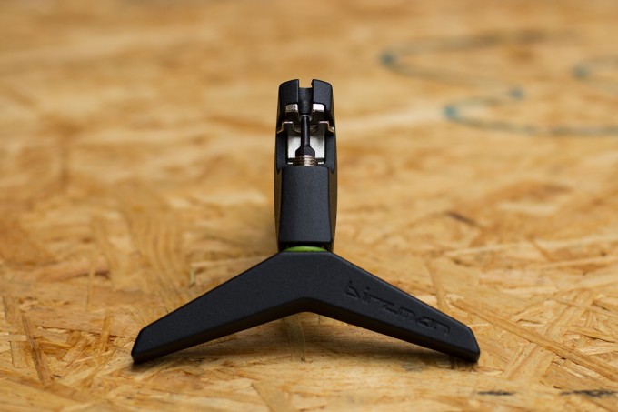 Birzman have balanced this tool well, it’s got a solid feel although we would have preferred a handle that tapered less. The thread is tight and smooth, it doesn’t suffer from the wobble that some cheaper tools do. The rotating handle is a decent size so if you have a particularly stubborn link you can put enough force through it to free a tight pin. The Damselfly is designed to work with all different chain sizes you are likely to come across and these are held in the right position with a small sprung plate.