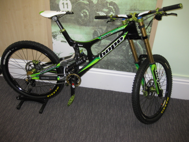 Bit more on the DVO, flicking through the stuff i picked up at the show, travel is 203mm with both 26″ and 27.5″ (650b) wheels, looks made to fit a Hope team bike that does.