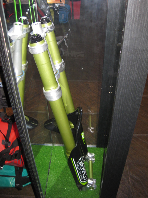 And another new player in the fork world, and an absolute stunner to kick off with from DVO with the Emerald USD, still a prototype, so no price, expected target weight is 2900grams, air main spring with coil negative, and a quick flick through the catalogue…..”Twin tube open bath cartridge, hi-lo speed compression and hi-lo speed rebound adjusters” and the lower shields are carbon fibre, and the arch is designed to add torsional stiffness by 50% at the wheel. Expected late summer 2013. Doubt i will ever get a go on a set, but they do look good, like these a lot.