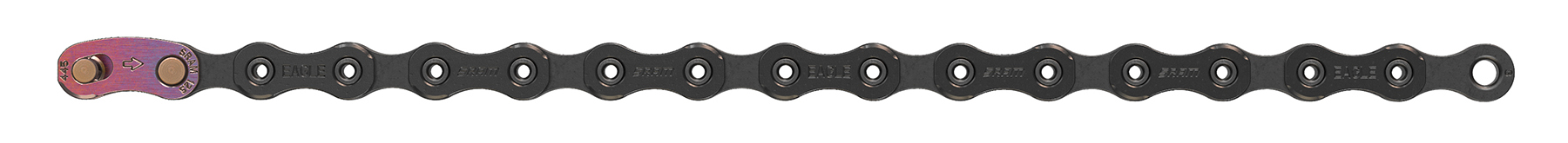 X01 Eagle™ takes everything you love about SRAM’s pioneering 1x drivetrains and increases its wear life, toughness, precision, smooth and silent operation. Add to that the 10- to 50-tooth, 12-speed, Eagle™ cassette, and you have a range of gears that gives you the freedom to enjoy the benefit of 1x in any terrain, any location and at any speed. X01 Eagle™ is drivetrain freedom—how you exploit it is up to you. X01 Eagle™ Chain Silence It might look normal from the outside, but the engineering inside this incredible new chain design that makes possible a gear range previously found only in 2-chainring drivetrains. And it’s also the biggest contributor to the Eagle™ drivetrain’s ultra-smooth, precise, durable and quiet performance. The Eagle™ chain’s links have a smooth radius, with no sharp edges or chamfers, which yield a significant reduction in noise, friction and wear on chainrings and cassette cogs. This design also allows for a flatter plate, which means more consistent chain riveting and greater overall strength. HARD CHROME™ technology extends the chain’s optimal performance life, and a Titanium Nitride coating on the Gold and Black models decreases corrosion and further reduces friction.