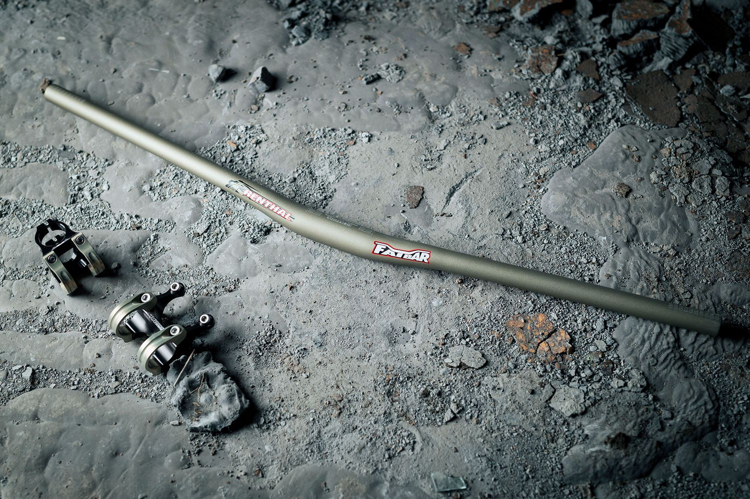 It’s been easy to spot an aluminium Renthal Fatbar on a bike. The distinctive gold anodised colour has been the only option if you’ve stuck with the more affordable aluminium bar rather than the lighterweight carbon Fatbar. For 2018, Renthal has given the range an overhaul, not long after offering a 35mm bar clamp option (and a wider width) back in the summer of 2016. With the updated 35mm clamp handlebar line, the Renthal design team saw the ride quality and flex characteristics as the most important design consideration. Renthal’s aim was to match their flex characteristics of this wider 35mm clamp size to be comparable to their current 31.8mm equivalent. The Fatbar 35 grew in width to a useful 800mm and the Fatbar Lite – a popular trail bike upgrade – now measured 760mm. The 31.8mm clamp bars remained at the previous narrower widths of 780mm and 740mm respectively. Until now…