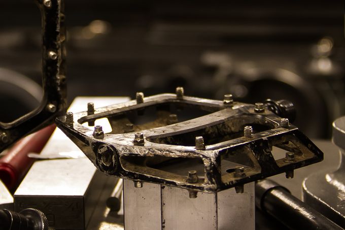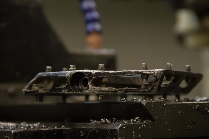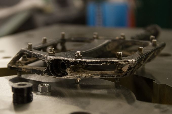 The support between the two sides of the pedal is superb, it took an almighty hammer blow of a crash to dent these pedals and even then the pins didn’t move and wound from their threads easily along with said dent being unnoticeable when riding. These pedals aren’t complicated looking, plenty of room for mud to get through and small enough steps and surfaces internally for it to not hang about. Get out riding on a shitty day, one flick of the pedals and they are clear of mud, good work DMR.