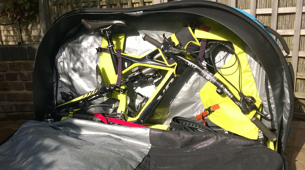 So on paper at least this new bag seems to stack up to the current market leaders The civilian chosen was heading out to Canada (I guess someone has too) and was taking their own Specialized Enduro 29er in large (should be a good test for any bag). Travelling with bikes always seems a bit of a faff, the amount of preparation to take your bike apart and build it back up at the other end is all part of that so I was greatly relieved to find that you only have to remove the wheels, pedals, bars and post to use the Axial pod and all these parts have their